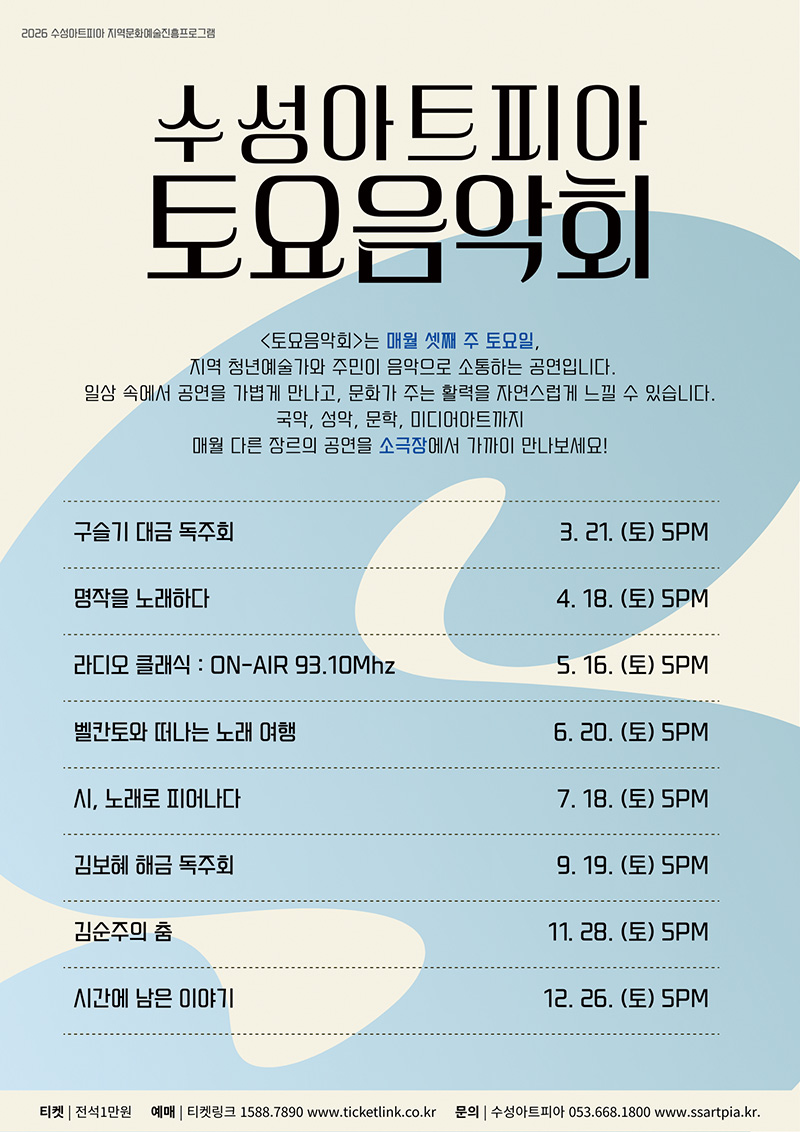 | 관람연령 | 초등학생 이상 관람가능 | 주최·주관 | (재)수성문화재단 수성아트피아 |