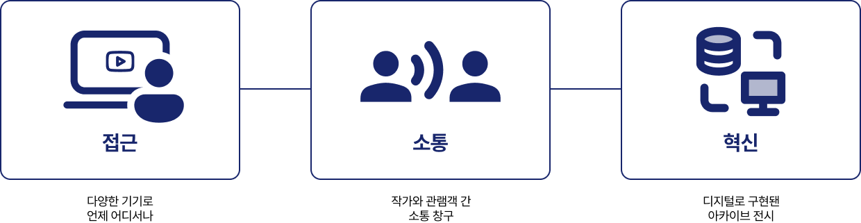 Ontpia는 수성아트피아의 전시를 언제 어디서나 만나볼 수 있는 디지털 플랫폼입니다. 온라인에 구현되는 전시를 통해 관람객들에게 새로운 방식의 예술 경험을 제공하고자 합니다.