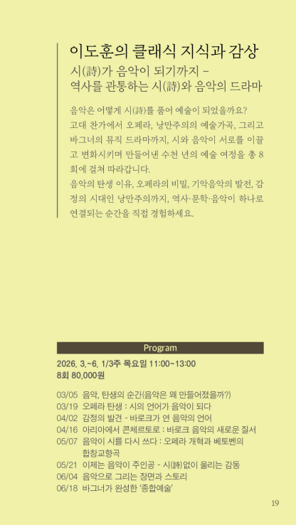 | 수강기간 | 2026.03.05.(목) ~ 2026.06.18.(목) | 수강료 | 80000원 / 8회 |
